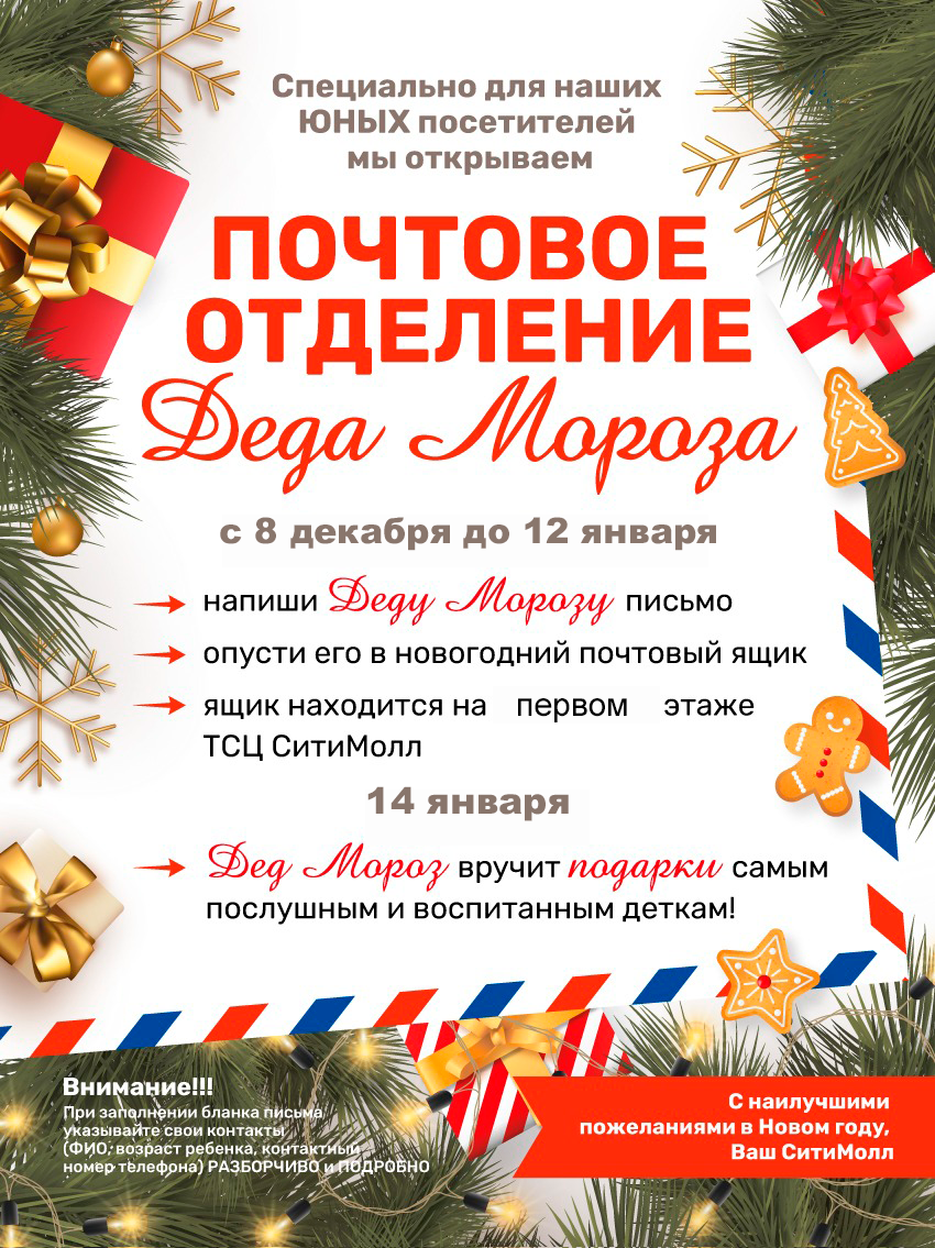 Опусти письмо в новогодний почтовый ящик, который находится на первом этаже ТЦ СитиМолл
